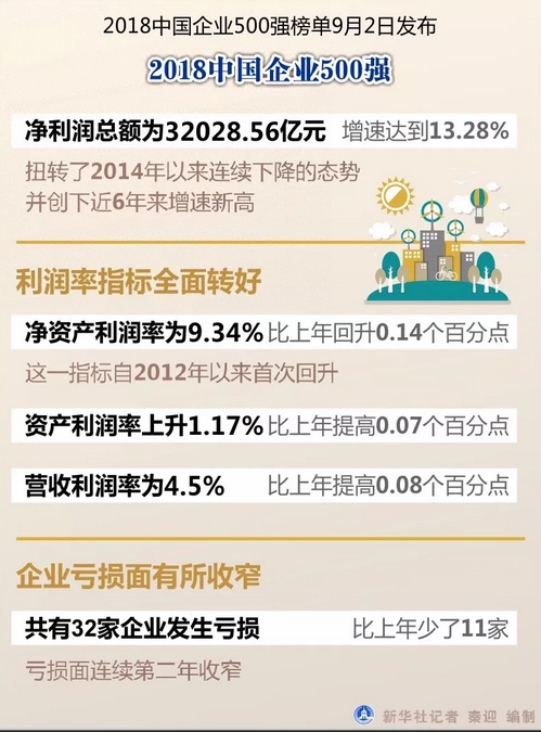 新華社西安9月2日電(記者許晟 張駿賀)2018中國(guó)企業(yè)500強(qiáng)榜單2日在西安發(fā)布,500強(qiáng)企業(yè)凈利潤(rùn)總額為32028.56億元,增速達(dá)到13.28%,扭轉(zhuǎn)了2014年以來連續(xù)下降的態(tài)勢(shì),并創(chuàng)下近6年來增速新高。
