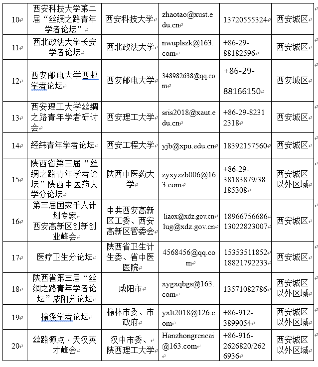 進(jìn)一步咨詢(xún),可發(fā)郵件或致電各分論壇,聯(lián)系方式見(jiàn)附表。
