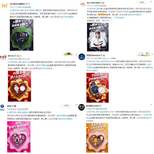 9月10日至12日,蘇寧服飾迎來(lái)周年慶,天梭表、海鷗表、周大福、紅豆居家等數(shù)百個(gè)一線(xiàn)服裝配飾品牌紛紛示愛(ài)。cFt安康新聞網(wǎng)