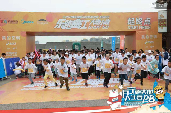10月6日清晨九點,伴隨著涼爽的秋風,西安馬拉松配套賽—美的空調(diào)&蘇寧易購大咖小咖Baby Go在響亮的槍聲中活力開跑,近300組家庭1000位跑者迎著朝陽,在大明宮國家遺址公園出發(fā)、奔跑。