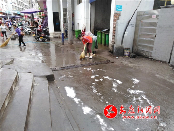 早上六點江北市場辦安排人員對學(xué)校周邊重要路口進行了值守,并組織人員用強堿對垃圾房周邊進行了清理,防止發(fā)生滑倒事件。