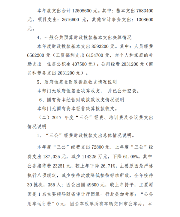 安康市審計局2017年部門決算公開說明
