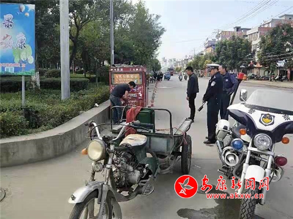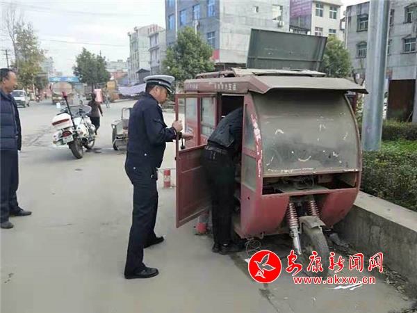 張灘中隊(duì)在巴山東路棗園段拖移僵尸車(chē)