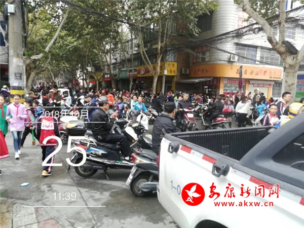 放學(xué)期間,育才路市一小,漢濱初中值守中