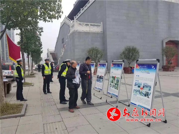 全國(guó)交通宣傳日江北交警隊(duì)在西城閣進(jìn)行安全宣傳并發(fā)放安全宣品。