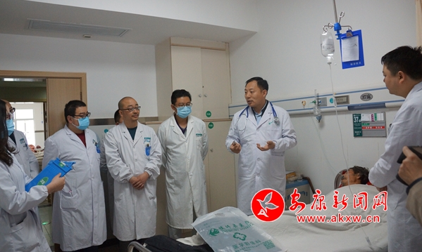 練學(xué)淦首先在鎮(zhèn)坪縣醫(yī)院內(nèi)科病區(qū),以2名腦梗塞患者為例進行示范性教學(xué)查房,來到病房詳細聽取了主管醫(yī)生的病例匯報。在凝神聽取主管醫(yī)生的匯報后,練主任在患者床旁同患者及家屬交談,并親自進行查體,了解疾病發(fā)展過程中的每個細節(jié),一絲不茍的從頭查起。