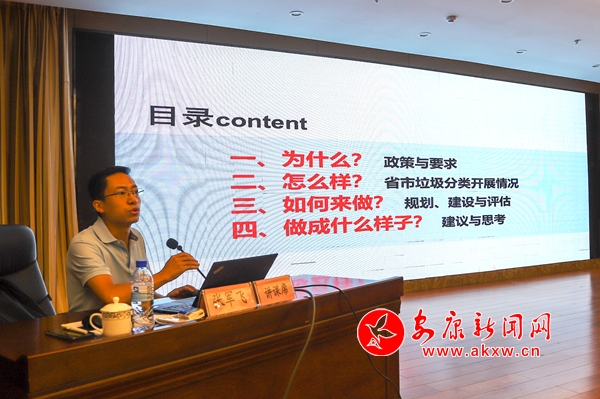 張軍飛先后主持完成《陜西省城市生活垃圾分類公共機(jī)構(gòu)建設(shè)導(dǎo)則》《陜西省城市生活垃圾分類示范片區(qū)建設(shè)標(biāo)準(zhǔn)》等省級(jí)規(guī)范與技術(shù)導(dǎo)則9項(xiàng),是我省生活垃圾分類領(lǐng)域的專家。當(dāng)天,他從“為什么、怎么樣、如何做、做成什么樣子”四個(gè)方面就開展城市生活垃圾分類工作的現(xiàn)狀、規(guī)劃、建設(shè)、評(píng)估等方面進(jìn)行了深入淺出、全面細(xì)致的講解。