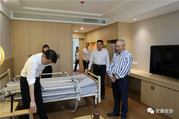 陳勇一行先后來到高新樂齡康養(yǎng)中心、安康高新醫(yī)院項目建設現(xiàn)場,通過實地察看、聽取介紹等方式深入了解康養(yǎng)產(chǎn)業(yè)建設情況。每到一處,陳勇都仔細看、認真聽,在高新樂齡康養(yǎng)中心,陳勇聽取了中心負責人關于項目整體情況介紹,并走進康養(yǎng)產(chǎn)業(yè)項目建設現(xiàn)場,具體了解項目進展、硬件設施配備、服務工作開展等情況;在安康高新醫(yī)院,陳勇與項目有關負責人深入交談,具體了解項目規(guī)劃建設、投資運營、后期管理等方面的情況。