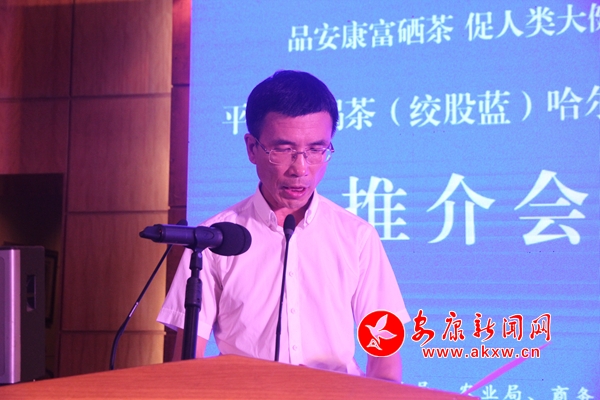 魯琦在致辭中對安康的區(qū)位、人文、生態(tài)、資源進行了介紹。他指出,安康市委、市政府把富硒茶產(chǎn)業(yè)作為為全國人民健康服務(wù)的健康產(chǎn)業(yè)、農(nóng)業(yè)特色產(chǎn)業(yè)的首位產(chǎn)業(yè)和農(nóng)民脫貧致富的當(dāng)家產(chǎn)業(yè),舉全市之力做大做強安康富硒茶產(chǎn)業(yè)。此次“安康富硒茶東北三省送健康”哈爾濱招商推介活動,旨在搭建茶企貿(mào)易合作和經(jīng)貿(mào)交流平臺,讓更多的人了解安康富硒茶,了解硒對人體健康不可或缺的作用。安康誠摯歡迎各界朋友、客商來安康開發(fā)富硒資源,投資富硒產(chǎn)業(yè),齊為黑龍江人民群眾的健康和陜茶振興做出貢獻。
