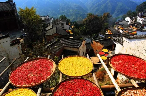 在湖南、江西、安徽等山區(qū),有“曬秋”習俗。因為平地少,農民便利用自家窗臺、房頂架曬或掛曬農作物。“曬秋”的秋不僅指秋天,更寓意著豐收和收獲的果實。