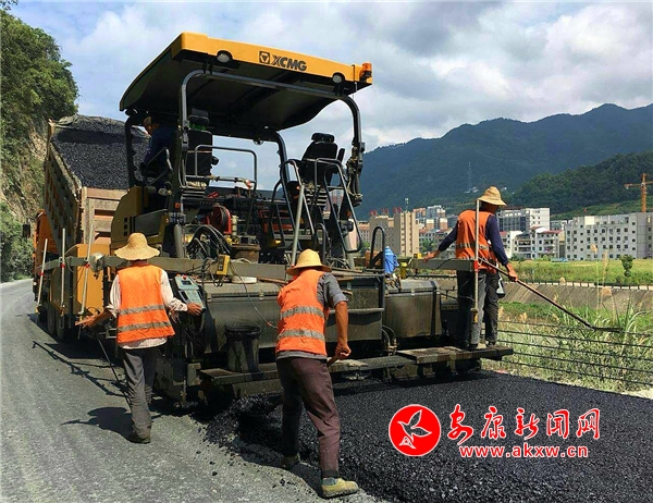 8月2日,筆者來到S308線2018年大中修工程LM—2標(biāo)段施工現(xiàn)場。剛打開車門,一股熱浪撲面而來。不遠(yuǎn)處,引擎轟鳴。運(yùn)裝瀝青料的車輛來回奔忙,七八名頭戴標(biāo)志帽,腳穿膠底鞋,揮舞著鐵鍬的工人,正在熱浪滾滾的作業(yè)面旁穿梭忙碌;旌狭喜粩鄰臄備仚C(jī)上卸下,碰到一些邊邊角角或者機(jī)械攤鋪不密實(shí)的地方,他們及時用鐵鍬不停補(bǔ)料、找平,清理整形。