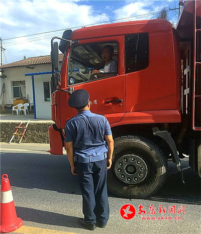 烈日下,一輛車牌號為陜G22**5的四軸重型貨運(yùn)卡車,在執(zhí)法人員尹明杰有條不紊的引導(dǎo)下,緩緩駛向便攜稱重設(shè)備。身著反光背心的尹明杰,面龐曬得發(fā)紅,汗水順著他的臉頰往下滾。“超重1.68噸……”活動板房窗口,治超二班班長劉浩瀚手持檢測設(shè)備探出頭來喊道,并開具超載情況告知單請駕駛員簽字確認(rèn)。