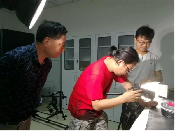 拍攝文物“鎏金銅蠶”