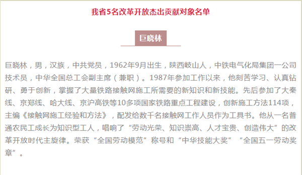 根據(jù)評(píng)選表彰工作部署,在各地區(qū)各部門反復(fù)比選、組織考察、集體研究提出推薦人選的基礎(chǔ)上,經(jīng)歸口評(píng)審、統(tǒng)籌考慮,產(chǎn)生了100名改革開放杰出貢獻(xiàn)擬表彰對(duì)象。其中我省5人入選,安康1人上榜。ewW安康新聞網(wǎng)