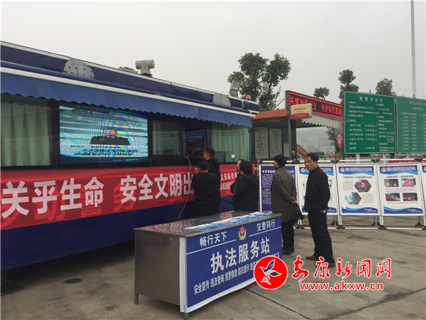 上午9時,在十天高速安康西執(zhí)勤點,安康市公安局交警支隊副支隊長吳旬安、安康高交大隊副大隊長彭龍靜帶領民警開展交通安全宣傳活動和嚴查交通違法大曝光活動。