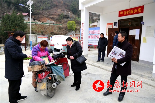 下午3點多走到聯(lián)盟村,趙明翠剛把報紙送到村上。村醫(yī)葉平菊就熱情地拉著趙明翠的手說:“山里好多群眾都搬到集中安置點安居了!村衛(wèi)生室都專門聘請的有醫(yī)生了!農(nóng)村婦女都能免費(fèi)體檢、免費(fèi)領(lǐng)取相關(guān)婦科藥品了!”趙明翠說:“這要感謝黨和國家的好政策!”