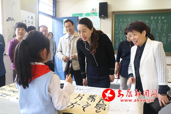 在漢濱區(qū)第一小學(xué),楊淼參觀了校園書(shū)法室、美術(shù)室、勞技室和音樂(lè)活動(dòng)室,在孩子們制作的書(shū)法、版畫(huà)、折紙等作品前駐足觀看,與孩子們熱情互動(dòng)交流,勉勵(lì)他們要加強(qiáng)體育鍛煉、強(qiáng)健體魄,常懷愛(ài)心、懂得感恩,努力學(xué)習(xí)、快樂(lè)成長(zhǎng)。在市兒童福利院,楊淼關(guān)切詢(xún)問(wèn)孩子們的身體狀況、教育和醫(yī)療保障情況,看到殘疾兒童在老師們的照料下快樂(lè)學(xué)習(xí)、健康成長(zhǎng),她向廣大教職員工表示感謝,并叮囑大家以更加飽滿的熱情把孩子們呵護(hù)好、教育好、培養(yǎng)好,為將來(lái)融入社會(huì)打下良好基礎(chǔ)。