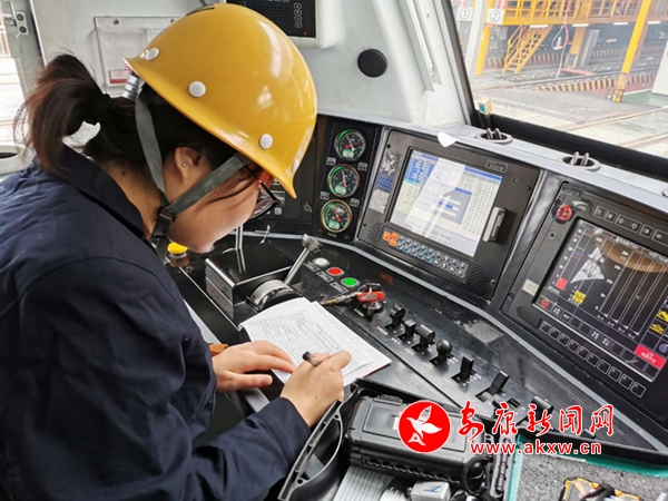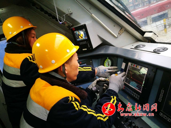 (圖為安康電務(wù)段車載車間職工在機(jī)頭作業(yè))