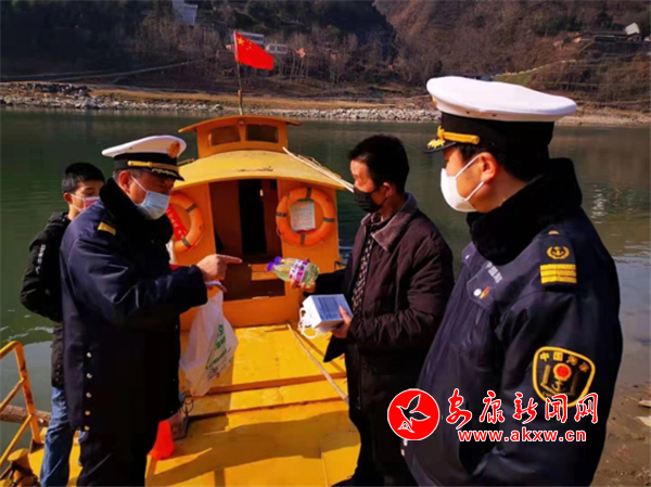 (海事人員為漢濱區(qū)青套渡口渡工發(fā)放個人防護(hù)用品)