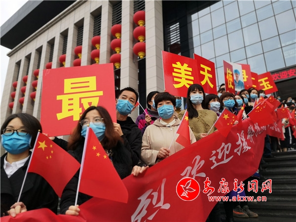 座談會溫馨、簡短,走出會議中心,歡迎英雄歸來的隊伍仍等在原地,他們揮動著旗子,喊著口號,急切地將援鄂英雄們擁到人群中間,讓相機定格這勝利、喜悅的一刻。
