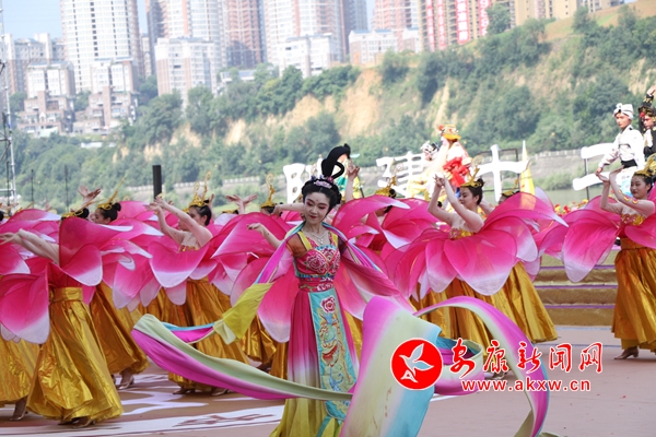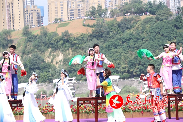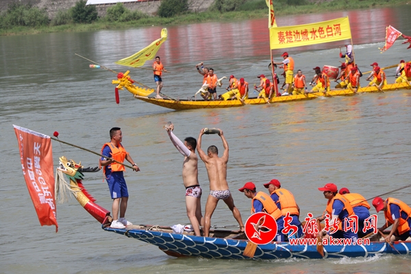 除了傳統(tǒng)儀式,情景劇《總書記來到咱身邊》、 民歌聯(lián)唱《秦巴風(fēng)韻》、 漢調(diào)二黃《不負(fù)青山追夢想》也相繼登臺,優(yōu)美的舞蹈配合婉轉(zhuǎn)唱腔,寓情于景,將傳統(tǒng)與現(xiàn)代、生活與藝術(shù)融合的恰到好處,特別是《總書記來到咱身邊》《不負(fù)青山追夢想》生動講述了習(xí)近平總書記平利之行的感人瞬間和殷切囑托,現(xiàn)場觀眾如身臨其境,心潮澎湃,深受鼓舞。期間還穿插進(jìn)行了安康經(jīng)典龍舟民俗——龍舟橫渡和搶鴨子摸鯉魚。伴隨著震撼的鼓點(diǎn)聲,龍舟健兒劈波斬浪,競相角逐,江面上水花飛濺,江水中人如離弦,贏得現(xiàn)場群眾連連拍手吶喊。