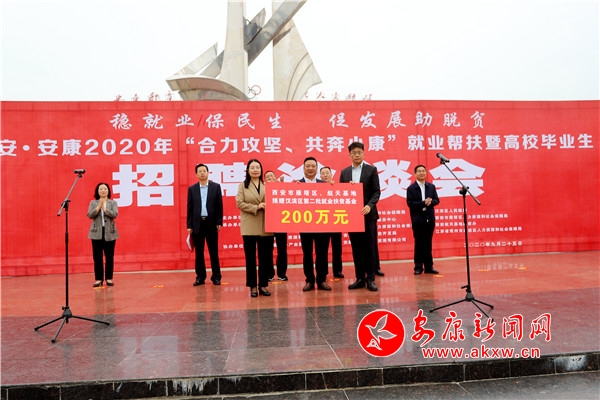 就業(yè),一頭連著百姓飯碗,一頭連著經(jīng)濟(jì)社會(huì)發(fā)展。這場(chǎng)招聘會(huì)吸引了來(lái)自西安市、常州市、金華市以及市內(nèi)共240余家企業(yè),提供崗位1.5萬(wàn)多個(gè),涉及電子商務(wù)、化工、金融、教育培訓(xùn)、餐飲服務(wù)、紡織工貿(mào)等多個(gè)行業(yè)領(lǐng)域。“三區(qū)兩地就業(yè)扶貧基金”捐贈(zèng)儀式上,西安市雁塔區(qū)、航天基地人社局向漢濱區(qū)人社局捐贈(zèng)了200萬(wàn)元就業(yè)扶貧基金。
