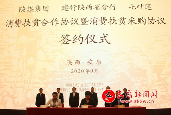 簽約儀式上,中國(guó)建設(shè)銀行陜西省分行、中茶公司、陜煤集團(tuán)、陜體集團(tuán)等分別與我市相關(guān)縣區(qū)及帶貧企業(yè)現(xiàn)場(chǎng)簽訂項(xiàng)目開發(fā)、消費(fèi)扶貧協(xié)議;中國(guó)建設(shè)銀行東京分行、納閩分行,香港金訊集團(tuán)等境外分支機(jī)構(gòu)及企業(yè)分別與我市帶貧企業(yè)通過遠(yuǎn)程視頻方式簽訂戰(zhàn)略合作、產(chǎn)品購(gòu)銷協(xié)議。