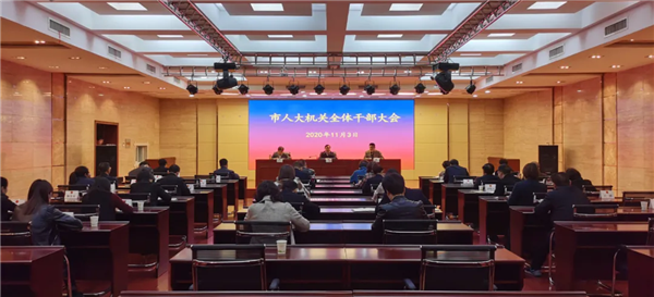 常委會黨組會議結(jié)束后,機(jī)關(guān)黨組緊接著召開縣級以下全體干部會議,傳達(dá)學(xué)習(xí)黨的十九屆五中全會精神,安排部署了機(jī)關(guān)工作。