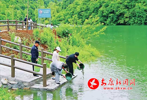 “桃花島”放生魚苗 沈沙沙 攝c3M安康新聞網(wǎng)