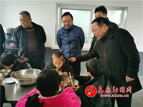 在學(xué)房埡小學(xué),張思成一行直接走進(jìn)幼兒教室、食堂操作間、學(xué)生就餐間,要求工作人員嚴(yán)格規(guī)范操作,詢問孩子們飯菜味道,了解學(xué)校師資狀況招生情況,看到學(xué)校一片拆舊房后場地還無力綠化硬化情況后,表示將予以支持。