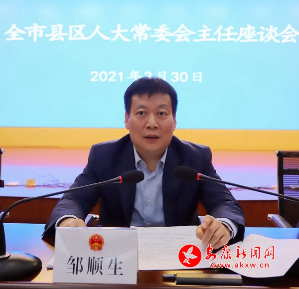 本網(wǎng)訊(記者 魏濤)3月30日,全市縣區(qū)人大常委會(huì)主任座談會(huì)召開。市人大常委會(huì)主任鄒順生主持會(huì)議并講話。市人大常委會(huì)副主任陳倫寶、鄭小東、羅萬平、周永鑫,一級(jí)巡視員馬孝芳、秘書長(zhǎng)吳少華參加會(huì)議。