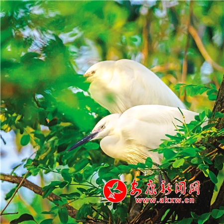 在安康高新區(qū)二垱村陳家祠堂附近,生活著一群白鷺,它們每年春天來這里交配產(chǎn)卵,繁衍后代。據(jù)說它們已經(jīng)在這里生活了二三十年,這是安康市幾十年來堅(jiān)持生態(tài)建設(shè)取得重大成效的重要標(biāo)志。