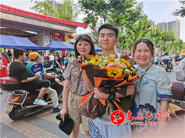 6月8日下午,伴隨著今年高考最后一門學(xué)科考試的結(jié)束,許多家長(zhǎng)手持鮮花,面帶微笑,迎接即將走出考場(chǎng)的高考學(xué)子。 (陳榮斌 攝)9xP安康新聞網(wǎng)