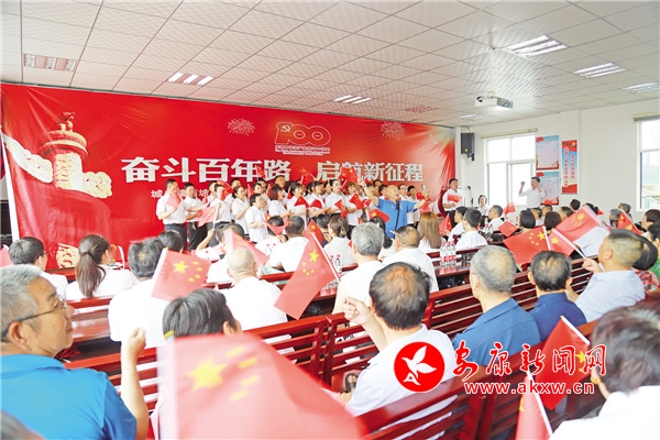 (6月25日,嵐皋縣城關鎮(zhèn)西坡社區(qū)黨總支部委員會、共駐共建單位200余名黨員和群眾歡聚一堂,舉行“奮斗百年路·啟航新征程”活動。廖霖 攝)