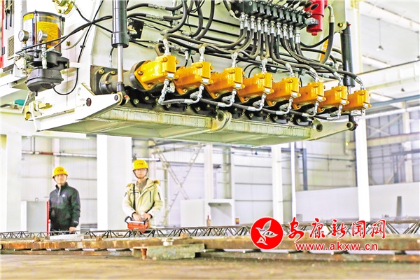 漢濱區(qū)工業(yè)化住宅預(yù)制構(gòu)件項(xiàng)目生產(chǎn)車(chē)間。張昊 攝
