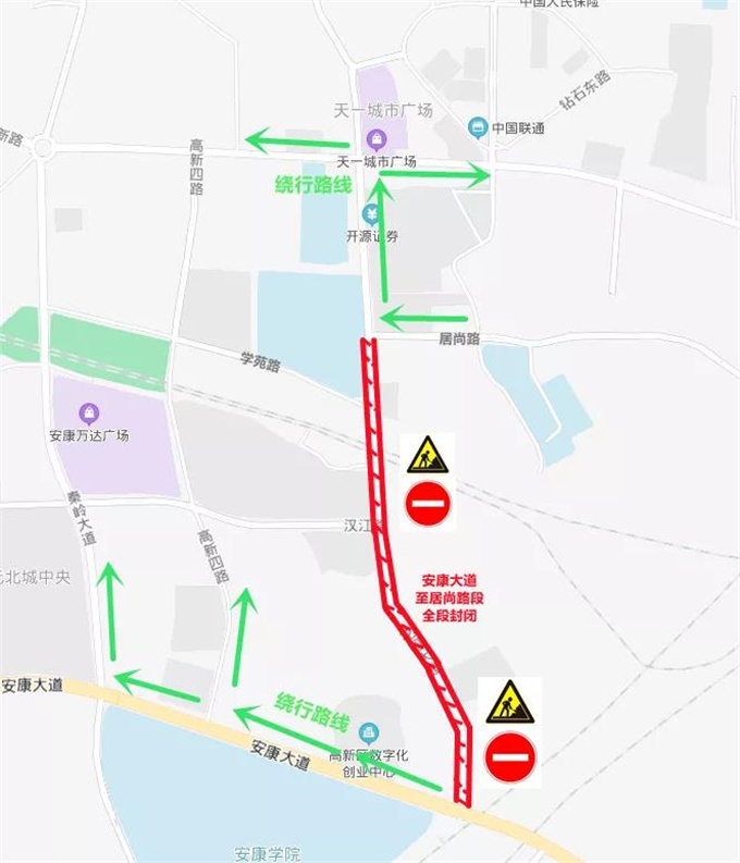 據(jù)了解,交通管制路段為花園大道(安康大道至居尚路段),全段封閉。交通管制時(shí)間為8月25日00時(shí)00分至9月1日00時(shí)00分。受交通管制影響車輛可通過安康大道、高新四路、秦嶺大道、世紀(jì)大道繞行。