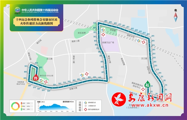 9月8日上午,十四運(yùn)會(huì)和殘?zhí)貖W會(huì)圣火將在安康國(guó)家高新技術(shù)產(chǎn)業(yè)開發(fā)區(qū)進(jìn)行第12站傳遞,屆時(shí)將有63名滿懷激情的火炬手,高舉象征希望的圣火跑完全程。安康火炬?zhèn)鬟f路線全長(zhǎng)5.7公里,起跑點(diǎn)為安康高新區(qū)創(chuàng)新創(chuàng)業(yè)中心,途徑花園大道、學(xué)府路、秦嶺大道、安康大道,收火點(diǎn)為安康高新區(qū)秦巴生態(tài)文化公園。整個(gè)線路散發(fā)著生態(tài)、文明、奮進(jìn)的氣息,集中展示了十八大以來(lái)安康經(jīng)濟(jì)社會(huì)高質(zhì)量發(fā)展成果。