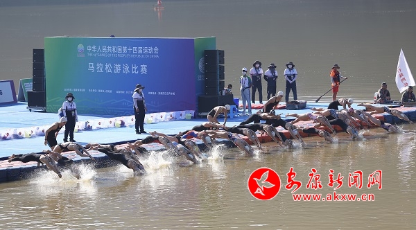 本網(wǎng)訊(記者 魏濤 陸青波 )9月12日9時(shí),隨著“嘀”的一聲哨響,十四運(yùn)會(huì)女子10公里馬拉松游泳項(xiàng)目在安康瀛湖正式開賽,來自全國21個(gè)代表隊(duì)的34名女運(yùn)動(dòng)健兒紛紛躍入水中,平靜的湖面瞬間浪花飛起。她們似蛟龍如飛魚,你追我趕,奮勇爭先。i89安康新聞網(wǎng)