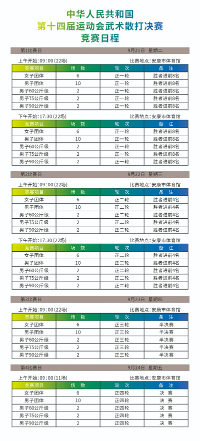 9月21日—24日第十四屆全國運動會武術(shù)散打比賽將在安康體育館正式開賽,這份“最全觀賽指南”快快查收!