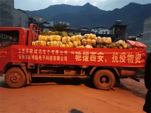 1月1日上午,11輛總價值121.8萬元抗疫物資專車從漢濱駛出,中午時分到達西安雁塔區(qū)和航天基地。這批滿載著廣大民營企業(yè)愛心的蔬菜、豬肉、米面油、礦泉水、牛肉醬及漢濱特產(chǎn)將在當?shù)亟y(tǒng)一調(diào)配下進入各大社區(qū),用于保障社區(qū)居民的日常生活及安全防護。