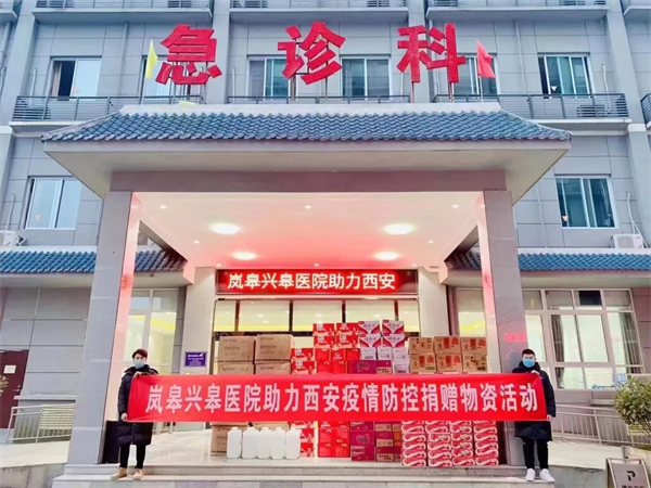 嵐皋縣興皋醫(yī)院有限公司捐贈總價值4.1萬元的醫(yī)用外科口罩、醫(yī)用酒精、消毒液、方便食品