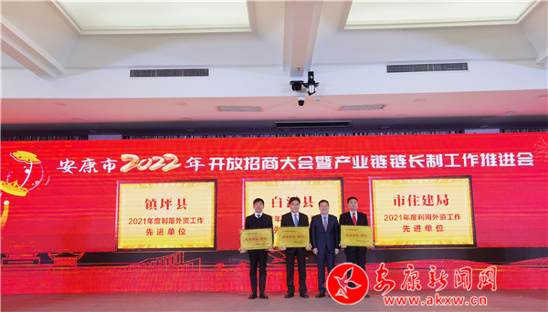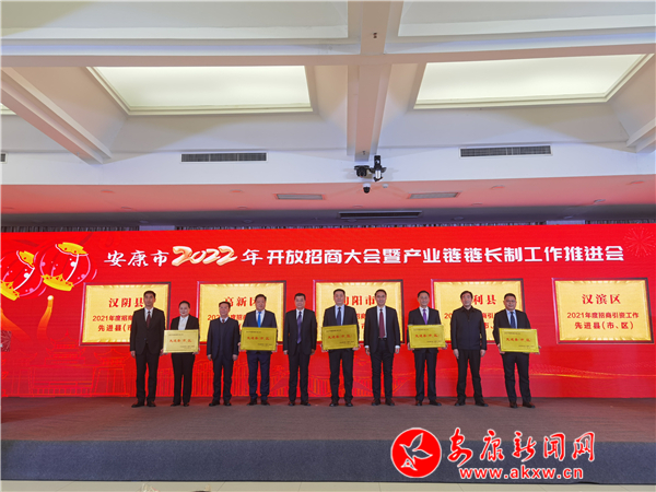 會(huì)議通報(bào)了安康市經(jīng)濟(jì)社會(huì)發(fā)展、重點(diǎn)產(chǎn)業(yè)鏈鏈長(zhǎng)制推進(jìn)、重點(diǎn)產(chǎn)業(yè)方向、營(yíng)商環(huán)境及2022年開放招商重點(diǎn)工作,表彰了2021年招商引資工作先進(jìn)單位和先進(jìn)個(gè)人。李華楓等16名同志聘為安康市開放發(fā)展高級(jí)顧問。