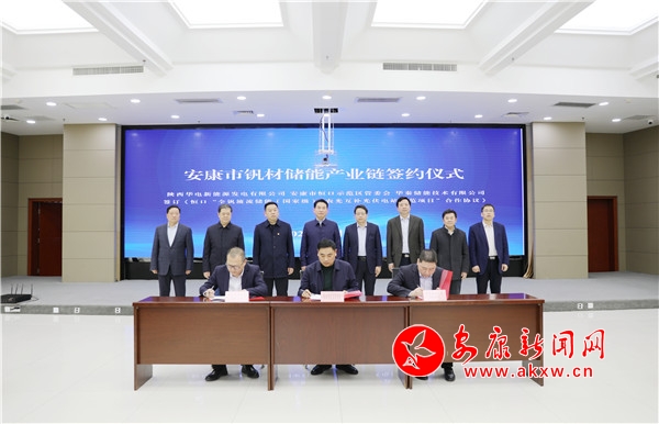 會上,趙俊民還就組建市釩材儲能產(chǎn)業(yè)鏈鏈長制工作專班、推動液流儲能示范應用等事宜作了安排部署,對與會人員提出的問題作了一一回應。華電陜西能源有限公司分別與華秦儲能技術(shù)有限公司、恒口示范區(qū)簽訂了合作協(xié)議。