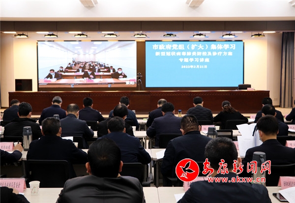 本網(wǎng)訊(通訊員 安政軒)3月21日晚,市政府黨組開(kāi)展新型冠狀病毒肺炎防控及診療方案專(zhuān)題學(xué)習(xí)。市長(zhǎng)武文罡主持會(huì)議并講話,市政府領(lǐng)導(dǎo)班子成員,疫情防控有關(guān)工作部門(mén)負(fù)責(zé)同志參加專(zhuān)題學(xué)習(xí)。各縣(市、區(qū))政府班子成員及部門(mén)負(fù)責(zé)同志以視頻形式參加學(xué)習(xí)。