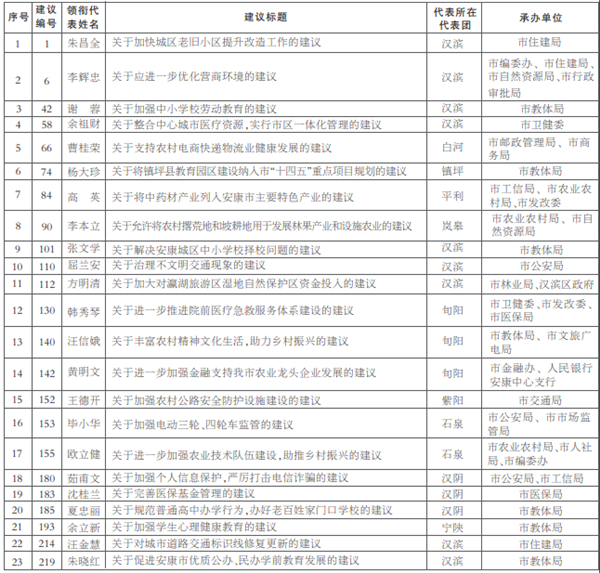 市四屆人大七次會(huì)議以來,全體市人大代表以習(xí)近平新時(shí)代中國特色社會(huì)主義思想為指導(dǎo),全面貫徹黨的十九大和十九屆歷次全會(huì)精神和中央人大工作會(huì)議精神,深入學(xué)習(xí)貫徹習(xí)近平總書記來陜來安考察重要講話重要指示,認(rèn)真落實(shí)好省委十三屆十次全會(huì)和市委四屆十二次全會(huì)工作部署,緊緊圍繞全市中心工作和人民群眾普遍關(guān)注的熱點(diǎn)難點(diǎn)問題,認(rèn)真履職,擔(dān)當(dāng)作為,共提出了228件代表建議(含閉會(huì)期間代表提交的7件建議)。許多代表建議通過認(rèn)真辦理,取得了明顯成效,為推進(jìn)安康經(jīng)濟(jì)社會(huì)發(fā)展和民主法治建設(shè)作出了積極貢獻(xiàn)。為樹立典型、表彰先進(jìn),市人大常委會(huì)決定,對(duì)朱昌全等代表提出的23件優(yōu)秀代表建議予以通報(bào)表彰。