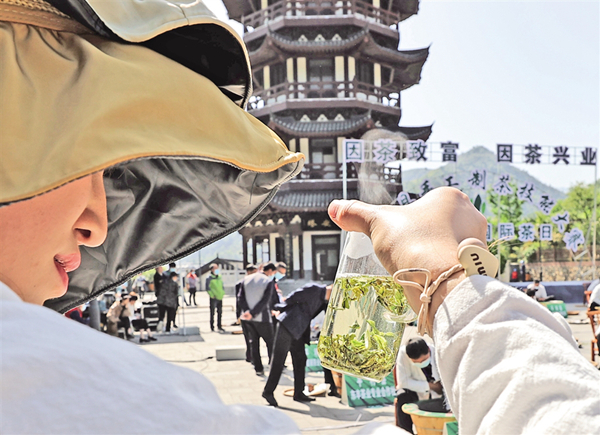 4月21日上午,2022國際茶日平利縣第六屆手工制茶技能大賽,在平利縣長安鎮(zhèn)女媧茶城長安塔廣場舉行。
