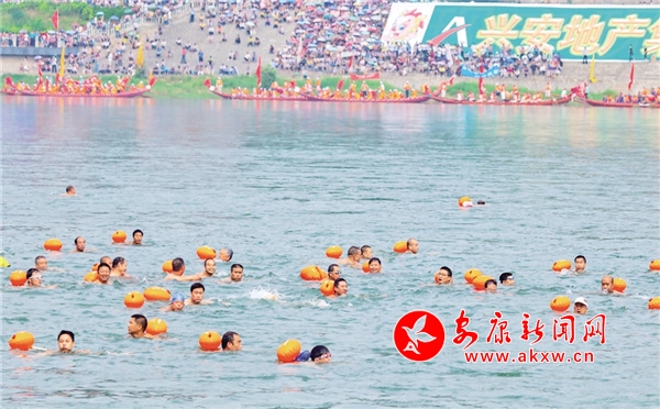 2011年,第十一屆安康龍舟節(jié)開幕式上,開展搶鴨子比賽。林江 攝BX6安康新聞網(wǎng)