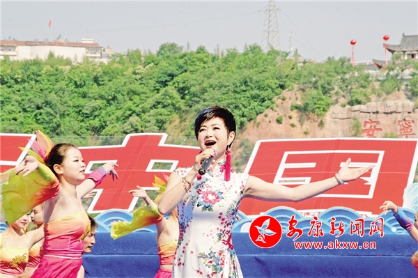 2013年第十三屆安康龍舟節(jié)開幕式上,安康籍國(guó)家一級(jí)演員陳俊華獻(xiàn)唱。 潘潤(rùn)生 攝BX6安康新聞網(wǎng)