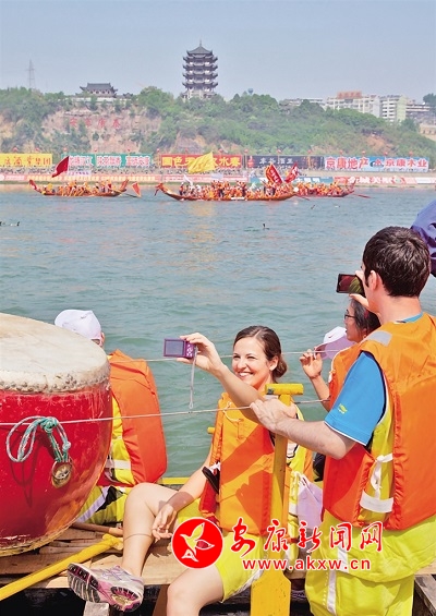 2011年龍舟節(jié)期間,外國(guó)游客體驗(yàn)劃龍舟。邵向東 攝BX6安康新聞網(wǎng)