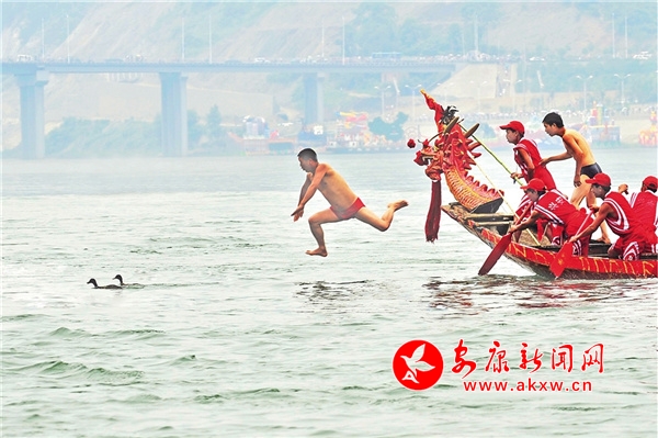 2012年第十二屆安康龍舟節(jié),來自安康冬泳隊(duì)的200余名冬泳愛好者助興龍舟節(jié)開幕式。 邵向東 攝BX6安康新聞網(wǎng)